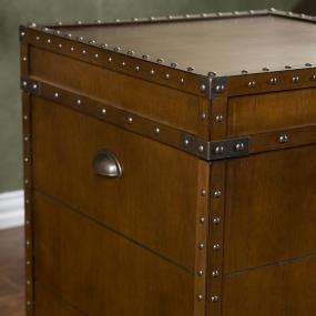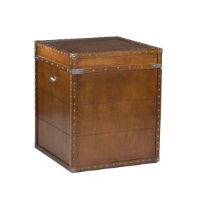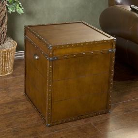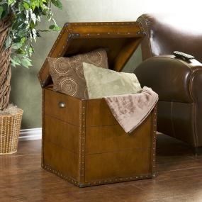 Crafted with a replicated antique look, this steamer trunk side table is ideal as a decorative, yet functional accent. Whether it's placed in your living room or bedroom, the convenient storage under the lid is sure to help clear the clutter. The rich walnut finish is accented with antique brass rivets along the trim. The lid opens with the help of progressive hinges that prevent slamming. This classic styled trunk is a great solution for your home.